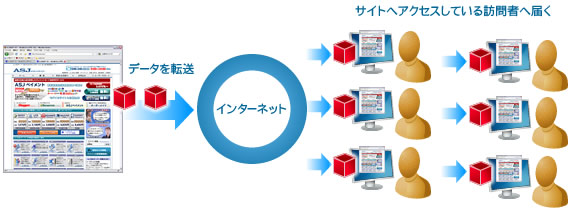 サイトへ訪問者がアクセスした時に、サーバーは訪問者のパソコンへデータを転送します。